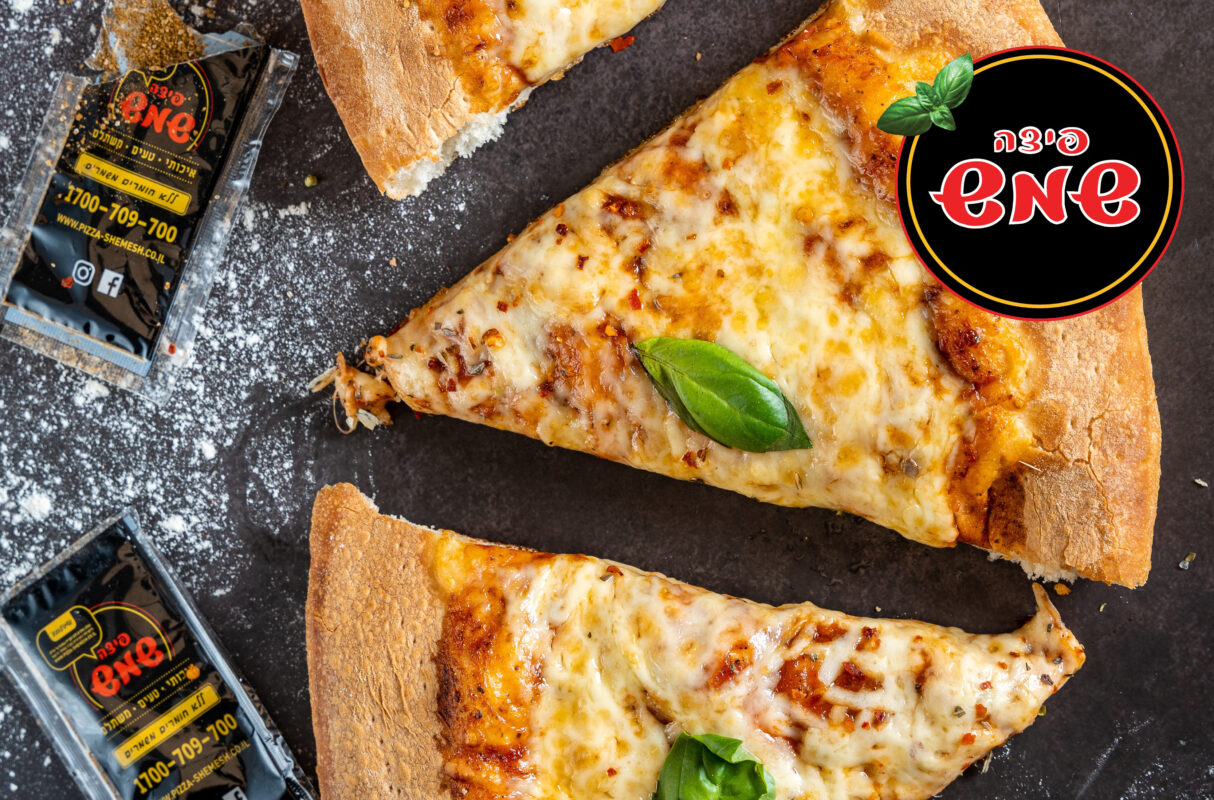 פיצה משפחתית+ לחם שום+ זיווה גבינות+ שתיה ורטבים בפיצה שמש